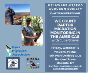 A recording of a presentation hosted by Delaware-Otsego Audubon Society (DOAS) at our 57th Charter Dinner on Friday, October 17, 2025 with keynote speaker Julie