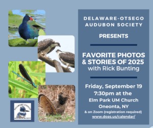 A recording of a presentation hosted by Delaware-Otsego Audubon Society (DOAS) with Fan Favorite, Rick Bunting on Friday, September 19 at 7:30 p.m. at the